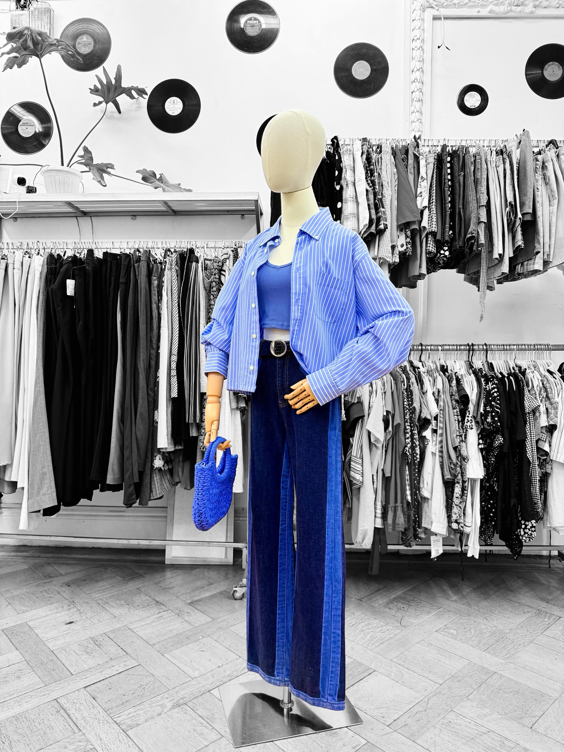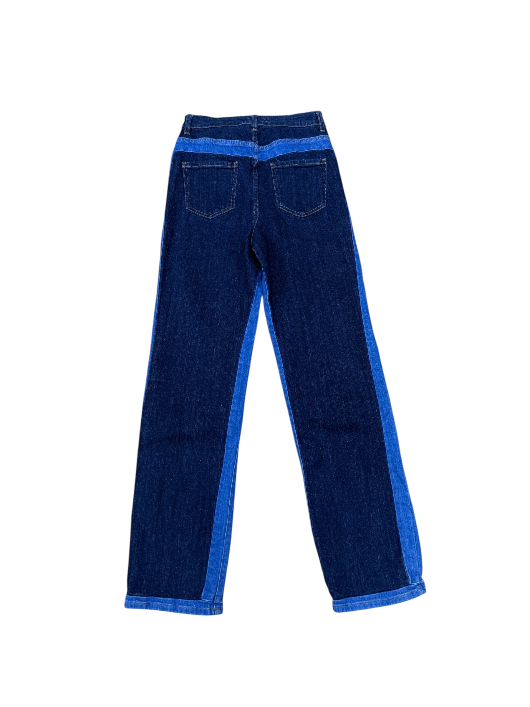 Jeans de tiro alto en tono azul profundo, con silueta en corte recto .