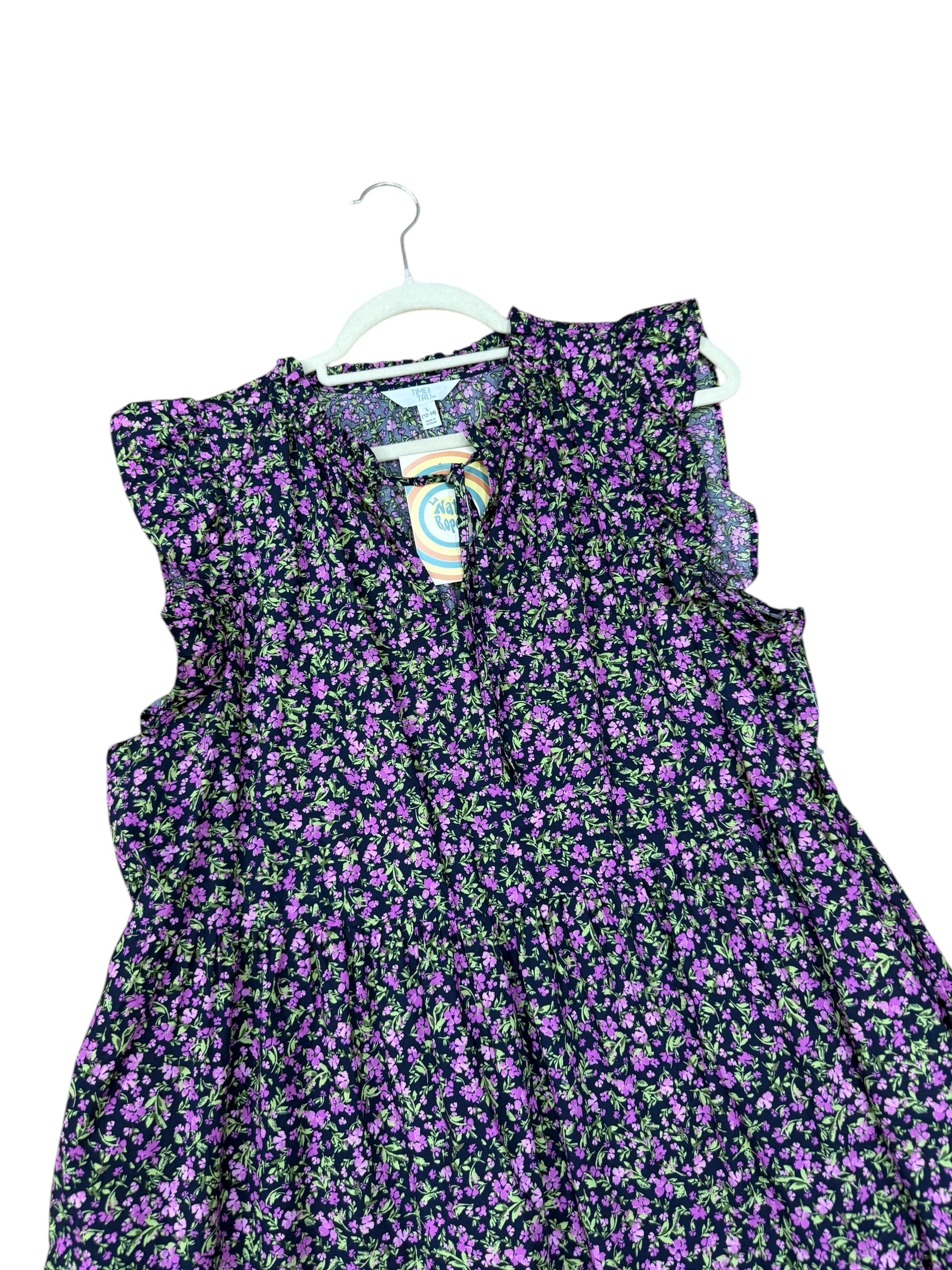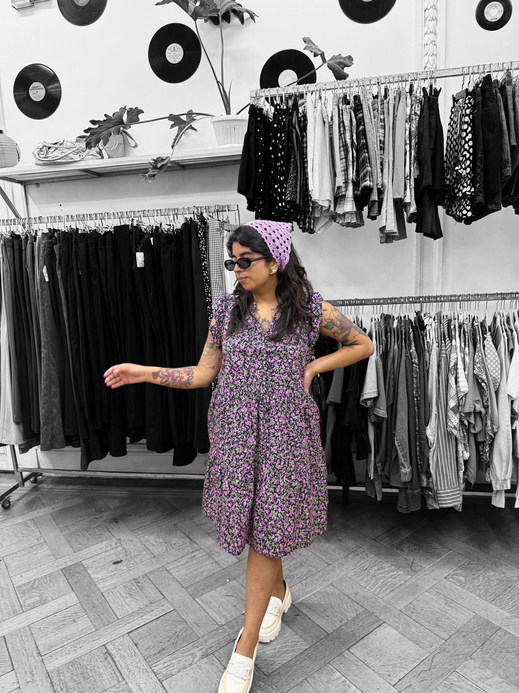 Vestido negro flores magenta